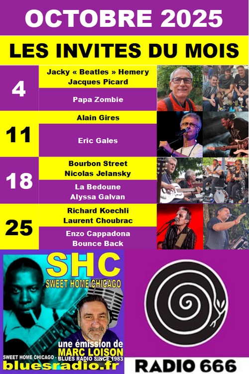 ! Toute la playlist est détaillée ici : Tout le blues actuel avec un petit oeil dans le rétro: chaque samedi, cest Sweet Home Chicago ! Marc Loison, blues radio since 1983. |