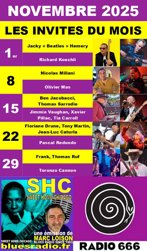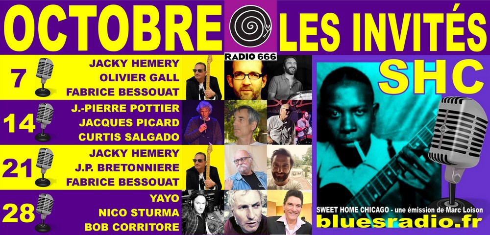 André Perronnet pour Blues Magazine - Alexx Wokenschroll pour le concert d'Alexx & Mooonshiners au Soubock le 24 octobre - J.J. Milteau pour la sortie de son nouvel album "Soul conversation" (Dixiefrog) |