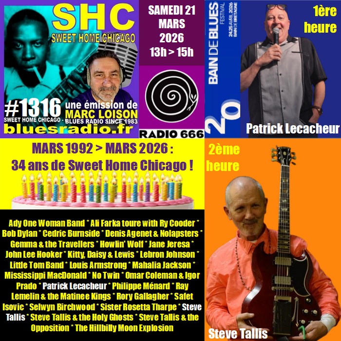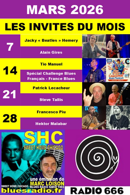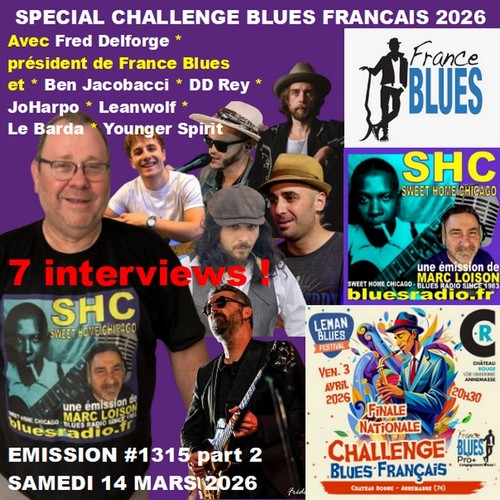 Les invités de la 2ème heure de ce 1315ème Sweet Home Chicago sont au nombre de 7 ! Cette heure de radio spéciale « Finale du Challenge Blues Français 2026 » contient tout ce qui sera audible et visible vendredi 3 avril prochain à Château-Rouge, à Annemasse : la sélection complète des 6 finalistes, dans les deux catégories, et la présence du président de France Blues: Fred Delforge. Après son interview dans laquelle nous faisons aussi le point sur les actions récentes et à venir de France Blues, nous ferons défiler les 3 finalistes de la catégorie « solo-duo » avec Ben Jacobacci, DD Rey et Le Barda, puis ceux de la catégorie « groupes » : Jo Callet de JoHarpo, Quentin Aubignac de Leanwolf et Gabriel Lamy de Younger Spirit. Chacun répondra aux mêmes questions concernant son univers musical, ses influences, sa réaction à la qualification au Challenge Blues Français 2026, son actu et ses projets... Que le meilleur gagne, youjours dans un bon esprit pour faire avancer le Blues en France ! Pour le reste du programme et afin d'illustrer lactualité de France Blues, nous écouterons des extraits des discographies de quelques musiciens adhérents : The Blue Footed Boobies, Olivier Gotti, La Bedoune, Jessie Lee & the Alchemists, Miguel M, The Blues Kid Combo, Mamas Biscuits et The Supersoul Brothers. Vous aussi, pour aider le Blues en France, adhérez à France Blues ! Tout est là : https://franceblues.com/?page_id=2328 Enjoy ! Marc Loison. |