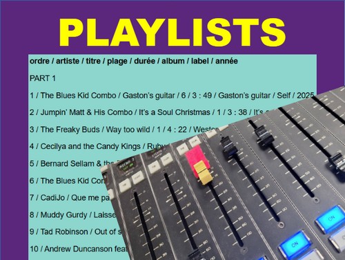 ! Toute la playlist est détaillée ici : Tout le blues actuel avec un petit oeil dans le rétro: chaque samedi, cest Sweet Home Chicago ! Marc Loison, blues radio since 1983. |